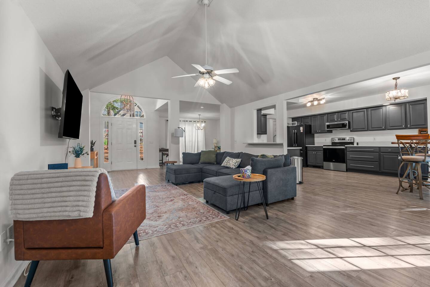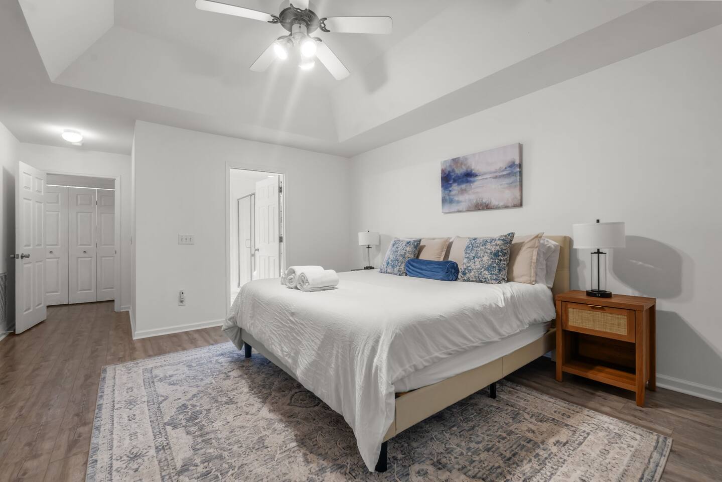 What our customers are saying about us: "The house was perfect for the 3 of us- we enjoyed having our own rooms. Beds were so comfy! The house was very nice and had everything we needed. Kristopher was very helpful and responsive. We will definitely be back!" - Martha ⭐️ Deck / Fire 🔥Table / Golf Course Views ⭐️ 2 Min to Carolina Trace Country Club Creek Course and Lake Course ⭐️ 5 Min to downtown Sanford ⭐️ Parking for 4 Cars on the Nearly FLAT Driveway ⭐️ Large fenced in backyard for furry friends to roam ⭐️ 1 Min to numerous trails and walkways ⭐️ Veteran Owned & Self-Managed Hospitality & Anticipating Your Needs Is Our Priority. We know you’ll love our home away from home as much as we do and we proudly manage ourselves. We look forward to providing 5-star 🌟🌟🌟🌟🌟 accommodations, service, and communication. If you have any questions or special requests please don’t hesitate to reach out prior to booking. PLEASE READ ENTIRE LISTING 3 Bedroom Main Level Home Sleeps 8 Featuring: ➖ A Variety of Sleeping Arrangements to Accommodate Your Group’s Needs. ➖ Main bedroom KING bed with En Suite Full Bath including walk in shower and soak tub ➖ 2nd Bedroom features Queen bed sharing a full hallway bath with shower/tub combo ➖3rd Bedroom offers two twin beds that can be pushed together ➖ Office sofa features a full size bed pullout that sleeps 2 more additional guests ➖ Deck off the back of the house featuring fire table and outdoor seating for backyard parties! Our house is in the private, gated community of Carolina Trace. Only residents and authorized guests will be allowed to enter the gate. Please enter the community through the main gate located off of Highway 87. Please send us the full names of all guests before check-in so we can add them to the access list. Any names of individuals not sent via airbnb messaging will not be able to access the community and drive to the house. Heart ❤️ us while you search! LOCATION LOCATION LOCATION! Guests Often Comment On How Convenient & Central Our Location Is! ▻ Only 2 minutes to Carolina Trace Country Club ▻ Only 10 minutes to Tobacco Road, Quail Ridge Golf Club and ▻ 10 Minutes to Central Carolina Hospital ▻ 30 Minutes to Pinehurst, Southern Pines and Aberdeen, and Downtown Raleigh ▻ 40 Minutes to/from Raleigh Durham Airport LIVING SPACES: ▻ CHILL VIBES enjoy your morning coffee or evening wine on comfy lounge furniture out on the deck or inside on the cozy couches ▻ Propane fire table ▻ 65 - inch smart TV to cast your favorite streaming service ▻ Fast and reliable wifi throughout KITCHEN: ▻ Fully equipped kitchen w/modern stainless steel appliances ▻ Dining table w/seating for 6 and additional seating outside ▻ Wine glasses, whiskey glasses and beer glasses for up to 8 ▻ Full size Washer/dryer in unit For more information on us and our listings please checkout our profile!