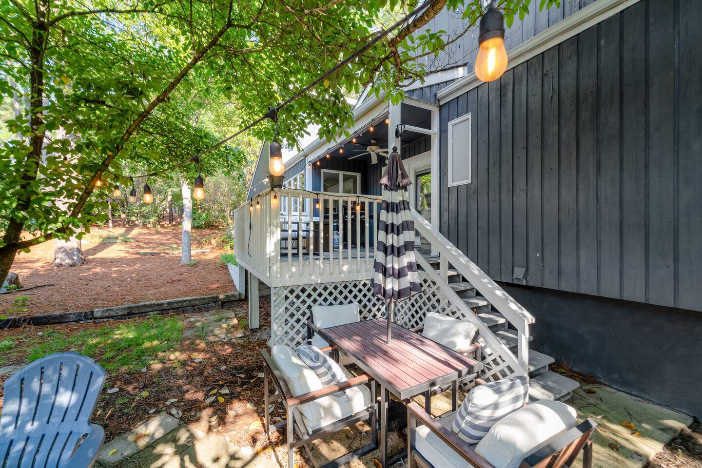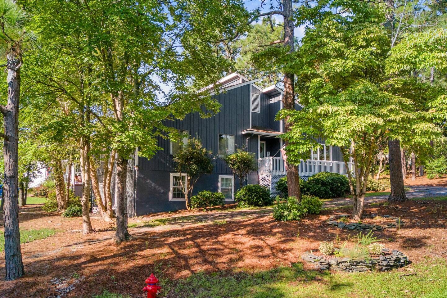 Hospitality & Anticipating Your Needs Is Our Priority. We know you’ll love our home away from home as much as we do and we proudly manage ourselves. We look forward to providing 5-star 🌟🌟🌟🌟🌟 accommodations, service, and communication. If you have any questions or special requests please don’t hesitate to reach out prior to booking. PLEASE READ ENTIRE LISTING This listing is for the main level Calhoun Clubhouse consisting of the upstairs 3 Bedroom Home. THERE IS A SEPARATE UNIT BELOW THIS HOUSE THAT CAN BE BOOKED SEPARATELY BY A DIFFERENT PARTY. While the downstairs unit has no access to the downstairs unit in any way, you may see the downstairs tenants should the unit be booked also during you stay as they enter the upstairs and go back and forth from their cars. IF YOU ARE NOT OK WITH THIS, PLEASE BOOK A DIFFERENT LISTING. The downstairs 2 Bedroom unit may be booked by another party during your stay, but you will still have plenty of privacy in the house and on the back deck. If you need a 5 Bedroom or only a 2 Bedroom Unit, please check out our other listings on our profile. 3 Bedroom Main Level Home Sleeps 8 Featuring: ➖ A Variety of Sleeping Arrangements to Accommodate Your Group’s Needs. ➖ Main Unit KING Bedroom with En Suite Full Bath including tiled shower w/bench and soak tub ➖ 2nd and 3rd Bedrooms feature Queen beds sharing a full hallway bath with tiled Walk-In Shower w/bench ➖ Queen air mattress available for additional guests ➖ Deck off the back of the house featuring fire table and grill, additional in ground fire pit in the backyard and outdoor dining table for dinner parties! Heart ❤️ us while you search! LOCATION LOCATION LOCATION! Guests Often Comment On How Convenient & Central Our Location Is! ▻ Only 5 minutes to Pinehurst No. 6 ▻ 6 Minutes to Longleaf CC (Host of U.S. Kids Golf) ▻ 5 Minutes to Moore County Regional Hospital ▻ 9 Minutes to the Fair Barn Wedding Venue ▻ 10 Minutes to Pinehurst Resort & CC, and Pinehurst Village ▻ 10 Minutes to Downtown Southern Pines and Southern Pines Golf Club ▻ Parking for 4 vehicles on the nearly FLAT driveway and garage ▻ 25 Minutes to Carolina Horse Park and Horse Country ▻ Over 20+ Golf Courses in a 25 mile radius LIVING SPACES: ▻ CHILL VIBES enjoy your morning coffee or evening wine on comfy lounge furniture out on the deck or inside on the cozy couches ▻ Propane fire table and Outdoor FIRE-PIT ▻ 65 - inch smart TV to cast your favorite streaming service ▻ Fast and reliable wifi throughout KITCHEN: ▻ Fully equipped kitchen w/modern appliances ▻ Dining table w/seating for 6 and additional seating in the bar area; Fold Out Table and additional chairs also available upon request ▻ Propane grill w/outdoor dining options ▻ 24 Bottle Wine Fridge in bar area with wine glasses, whiskey glasses and beer glasses for up to 12 ▻ Washer/dryer in unit and laundry detergent is provided (If you plan to do more than one load, please plan to bring additional detergent) A FEW ITEMS TO NOTE: - Our shower heads are high efficiency, and provide adequate water flow, however this may not be ideal for all guests. Please look at other options if looking for a luxury shower experience. - As we have several trees that drop leaves and other yard waste, there may be some leaves that get into the house. There are brooms in the house to help sweep them out. For more information on us and our listings please checkout our profile!
